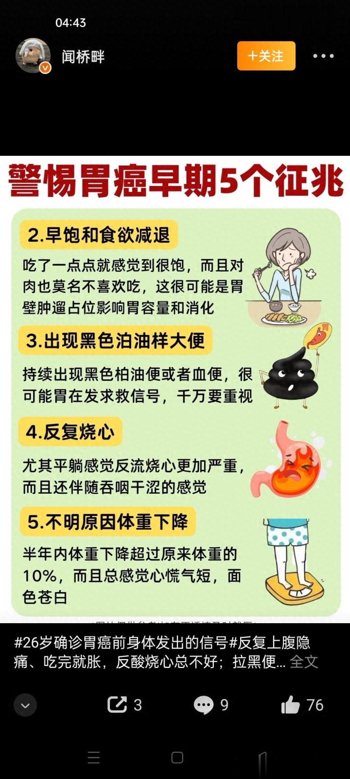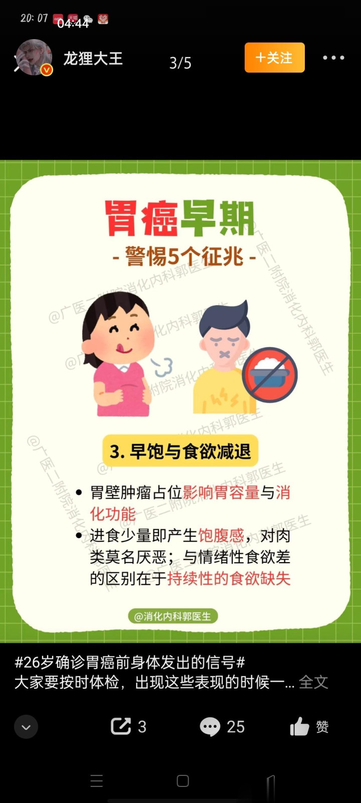 现在很多年轻人仗着年轻硬扛,把胃当成“铁打的”。但胃癌年轻化趋势越来越明显,小毛病拖着不治,迟早拖成大问题!身体不会说谎,出现异常别硬撑,及时检查才是对自己负责。转发给身边爱熬夜、吃外卖的朋友,健康永远是第一位!